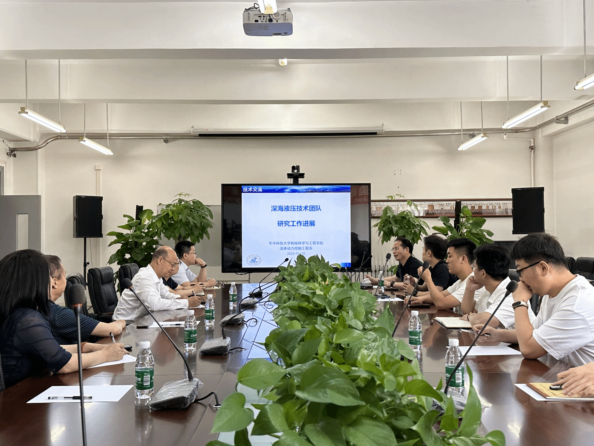 报告中,刘银水教授详细介绍了深海液压技术研究进展。在深海极端环境下,海水液压元件面临超高外压下精密运动副形变卡滞、摩擦副重度腐蚀磨损、超高压海水动密封失效等重大难题。报告从结构原理、材料工艺以及设计方法等方面系统阐述解决上述难题的创新思路与措施,同时介绍相关成果在“奋斗者号”载人潜水器等深海重大工程装备中的应用情况。最后,刘银水教授为大家分享了其科研团队在该领域的最新研究成果,为大家介绍了大深度浮力调节海水泵、全深度浮力调节海水泵等几个重大项目的研发过程及细节,使在座的师生深受启发。报告会后,刘银水教授同参会师生进行了互动交流与深入探讨,并初步确定了进一步深入合作的领域和方向。报告会前,刘银水教授及其团队成员在公司党委书记李颂华教授的陪同下,参观了公司实验室及相关成果展示。