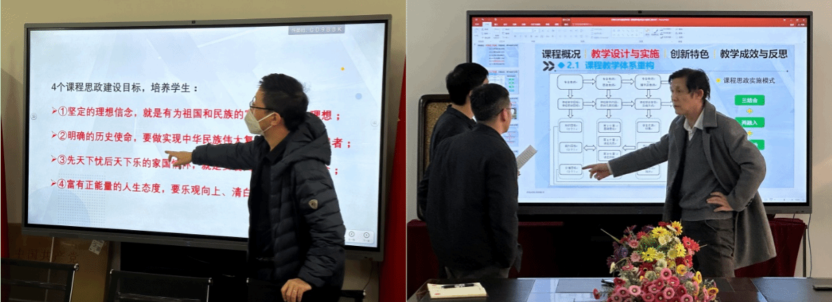 备赛过程中费烨对教学展示的内容、思政元素的融入进行讲解