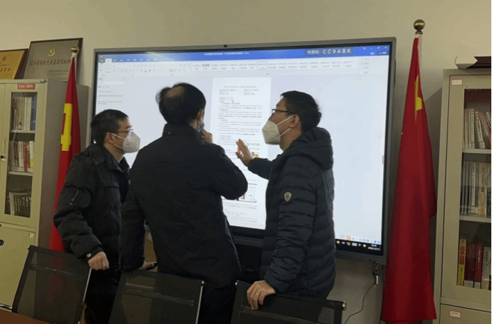 备赛过程中费烨、谢正义、贾春强研讨创新报告