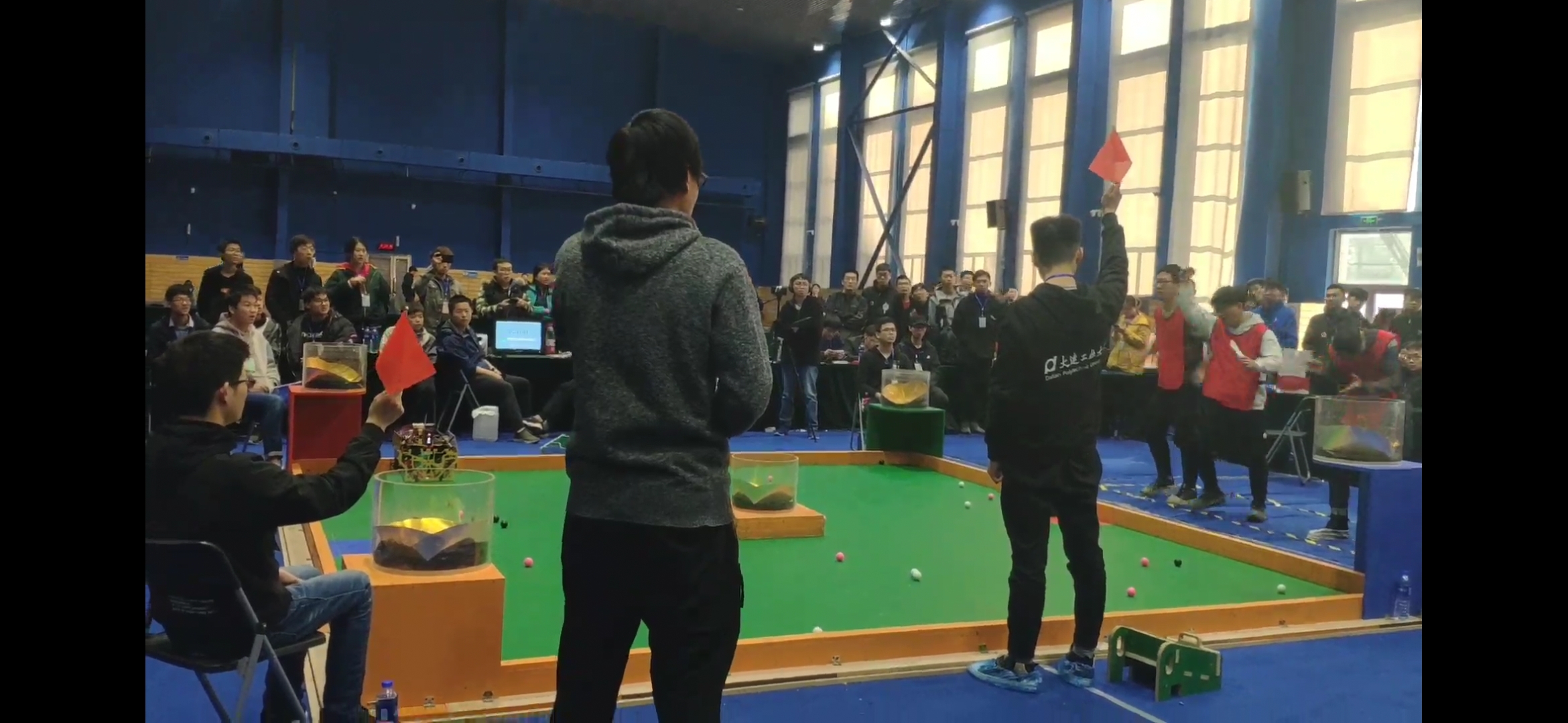 辽宁省本科生机器人竞赛采用两队对抗的形式,包含小组积分赛和淘汰赛,题目每年一变,今年的竞赛主题要求两队根据赛前抽签在场地内收取矿石并将正确的矿石投入对应的空中储藏室,比赛设有完胜和比分等多种获胜方式,不仅考验参赛队员精密机电系统设计、传感器运用、人工智能等技术知识,还要利用规则和对手的技术设计多套针对性获胜策略。比赛过程中,简锋二队小组赛两胜一平轻松出线,淘汰赛阶段止步32强,简锋一队小组赛首场中机器人出现故障败北,随后队员们抓紧调试以完胜的成绩结束第二场比赛,后续淘汰赛阶段稳扎稳打,在八进四的比赛中机器人再次出现故障,经过紧急抢修后在后续的五六名争夺中轻松获胜。