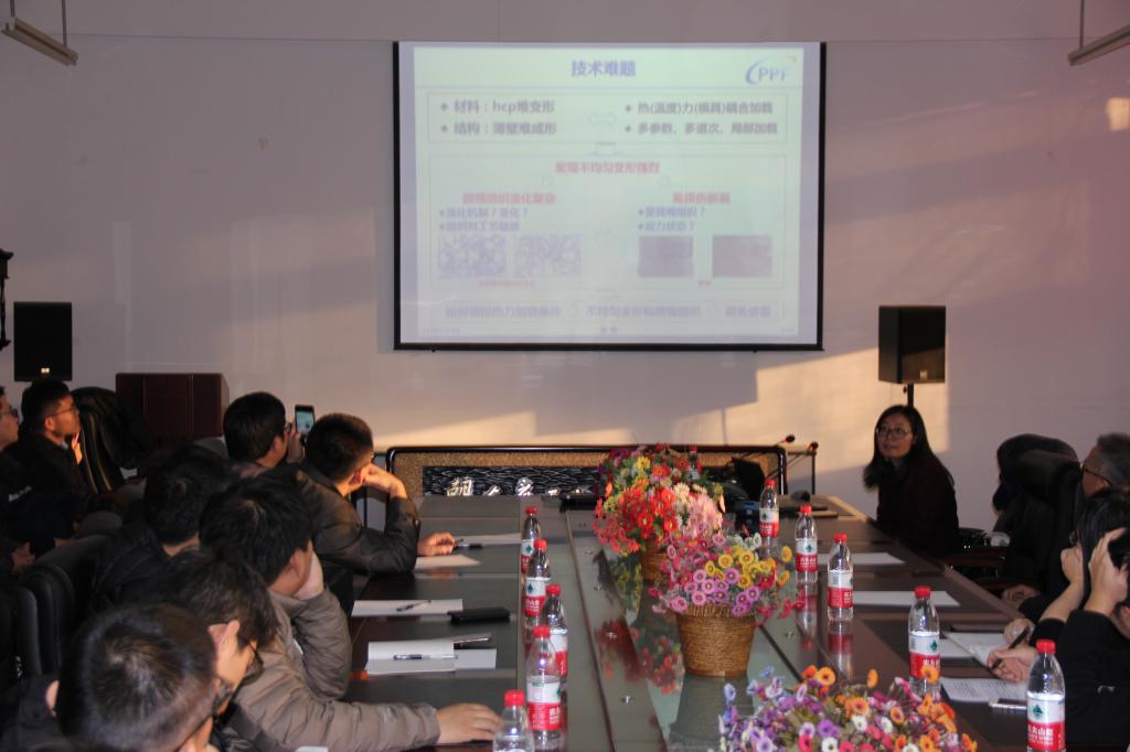 在“钛合金轧——旋变形与损伤破裂行为研究”专题报告会上,詹梅分享了自己在钛合金材料研究中积累的经验和丰富的阅历,与到会的师生进行了交流探讨。