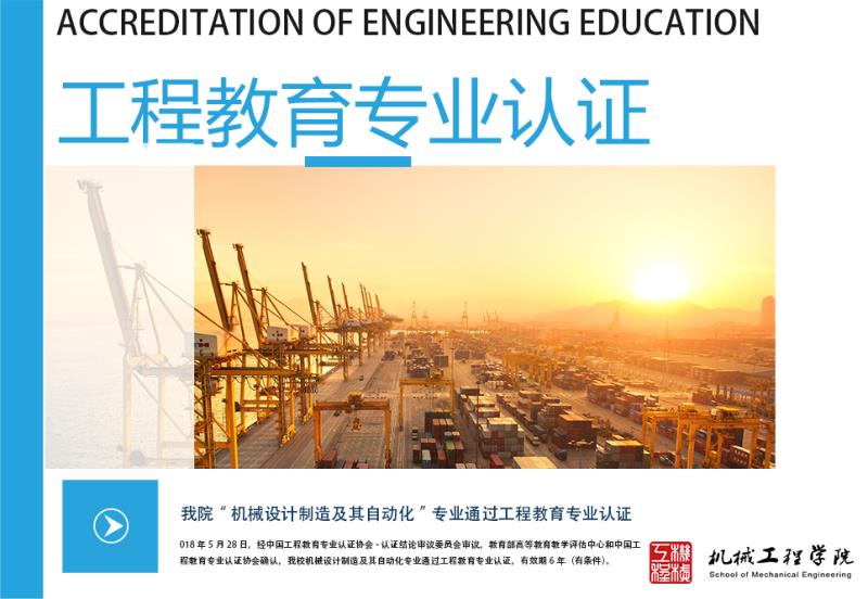 2018年5月28日,经中国工程教育专业认证协会-认证结论审议委员会审议,教育部高等公司产品评估中心和中国工程教育专业认证协会确认,公司机械设计制造及其自动化专业通过工程教育专业认证,有效期6年(有条件)。